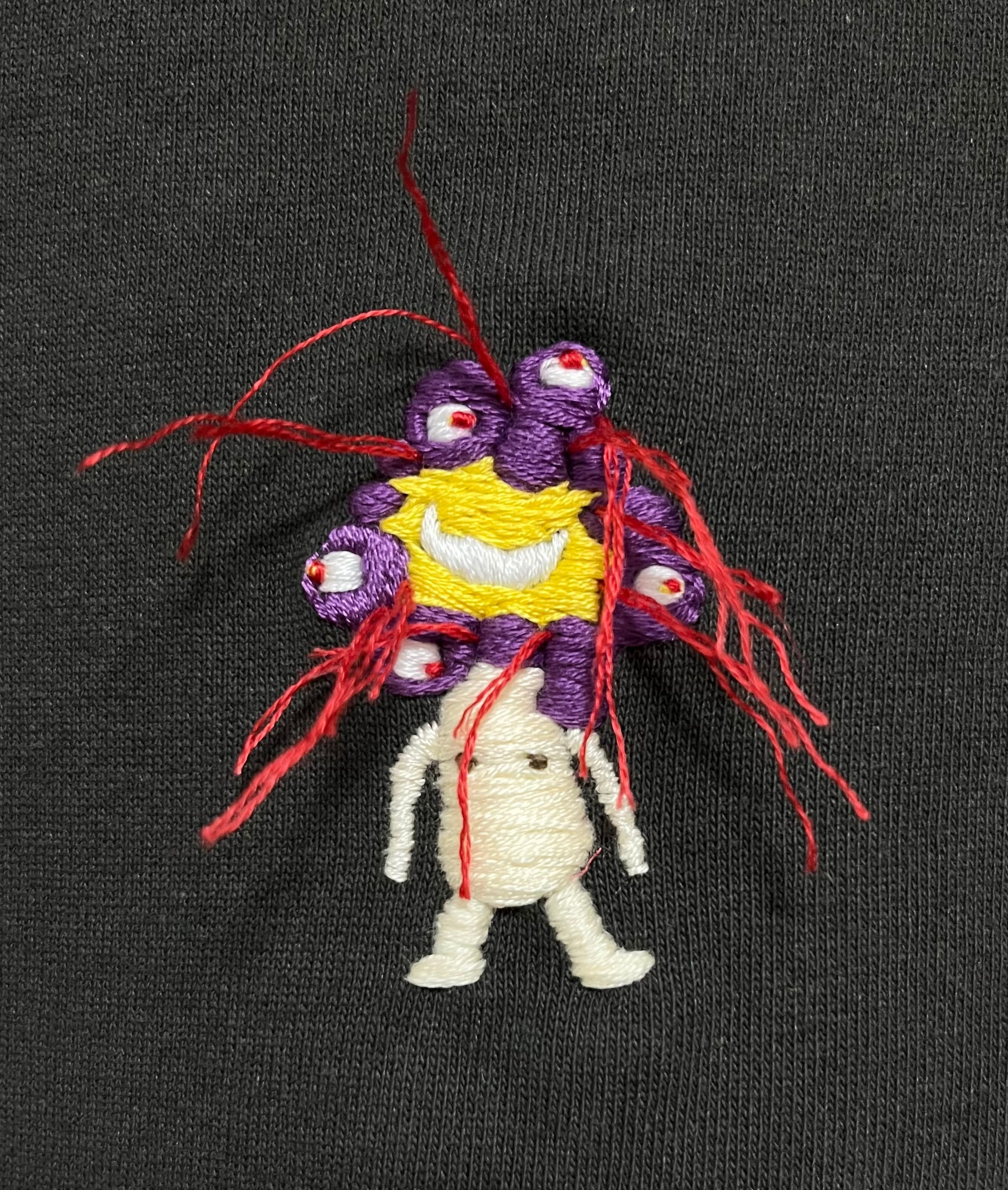 胸部分に手縫いの刺繍を施したオーバーサイズTシャツ。