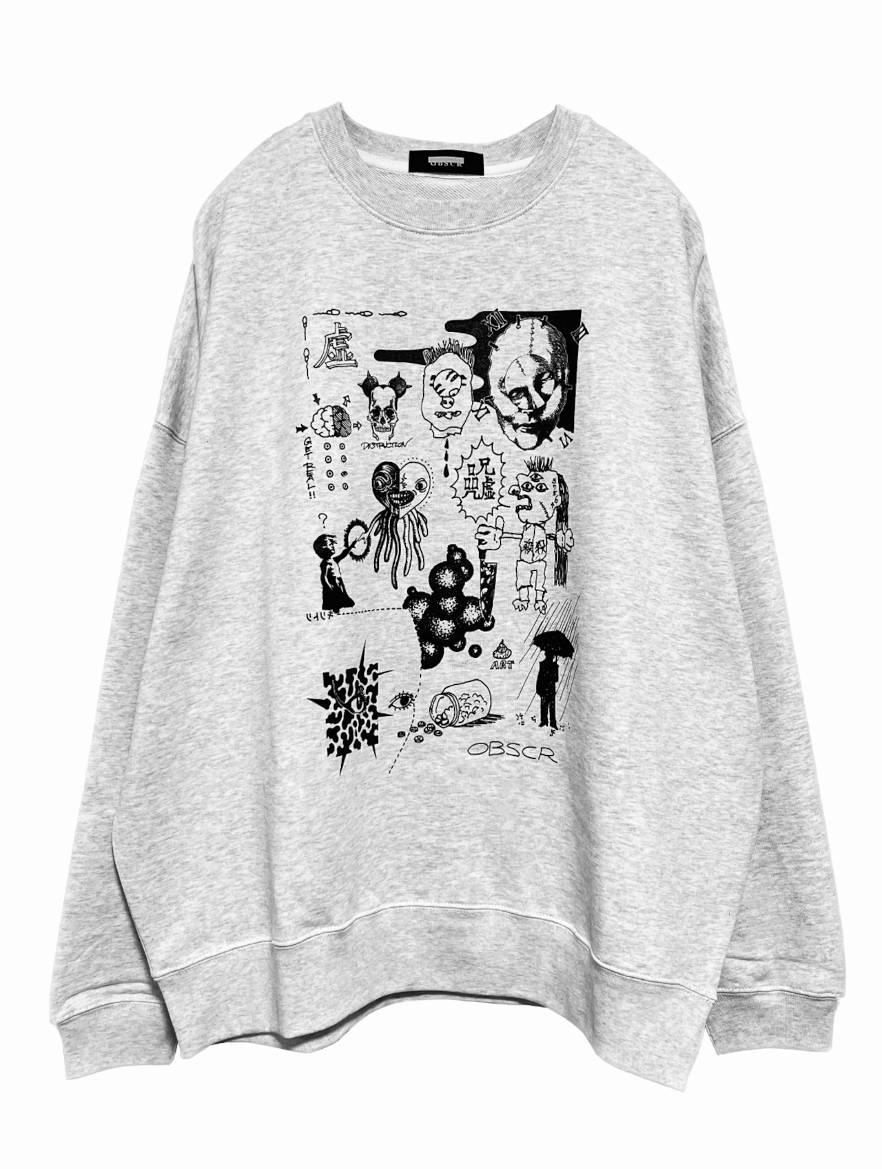 裏パイルビッグシルエットスウェット OBSCR57 アッシュ×ブラック(シルクスクリーン)