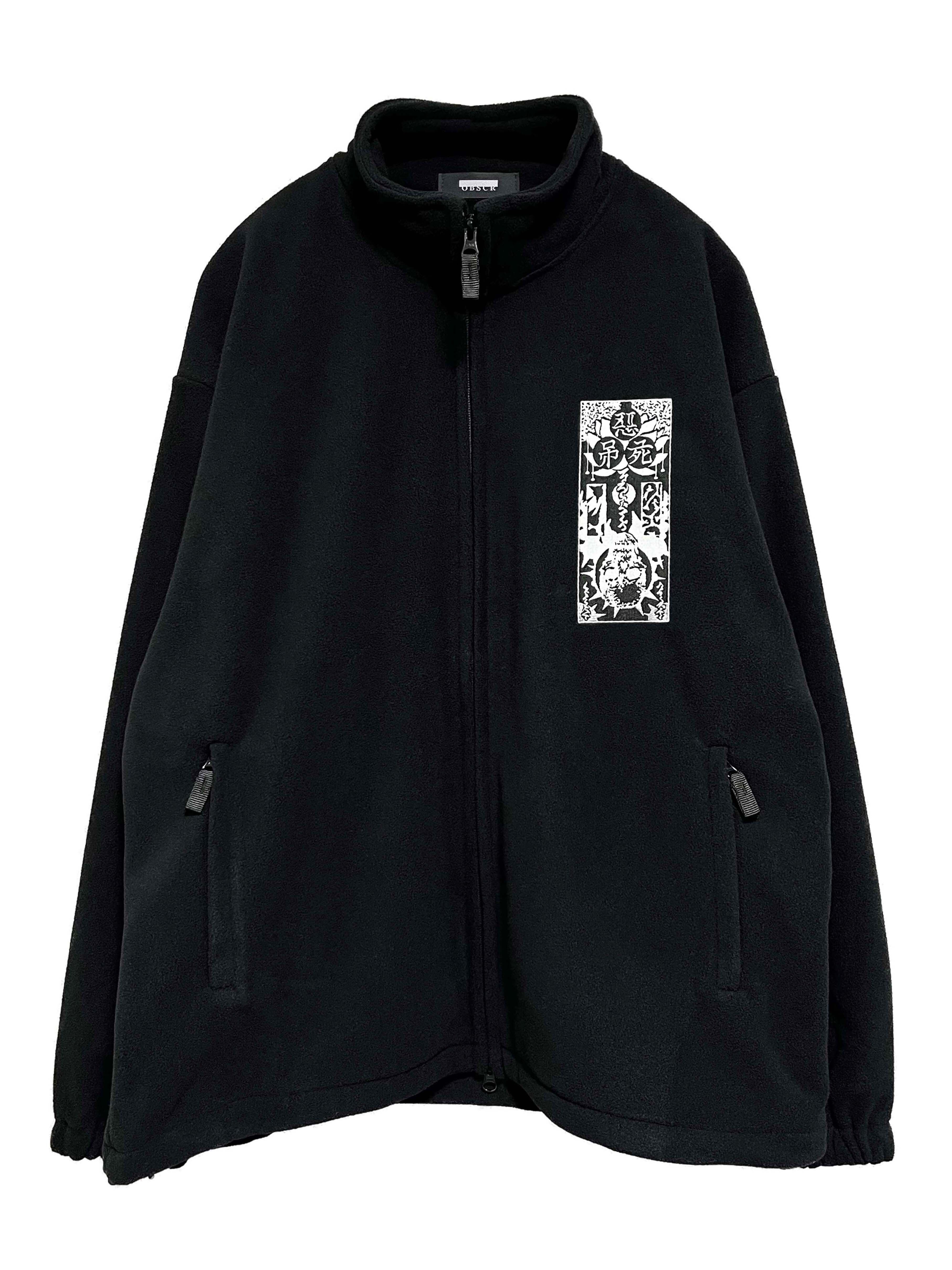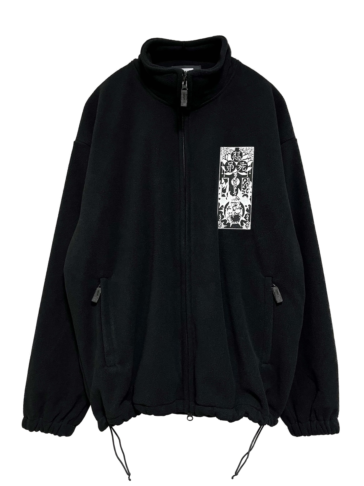 リラックスフィット 刺繍フリーススタンドジャケット OBSCR59 ブラック×ホワイト