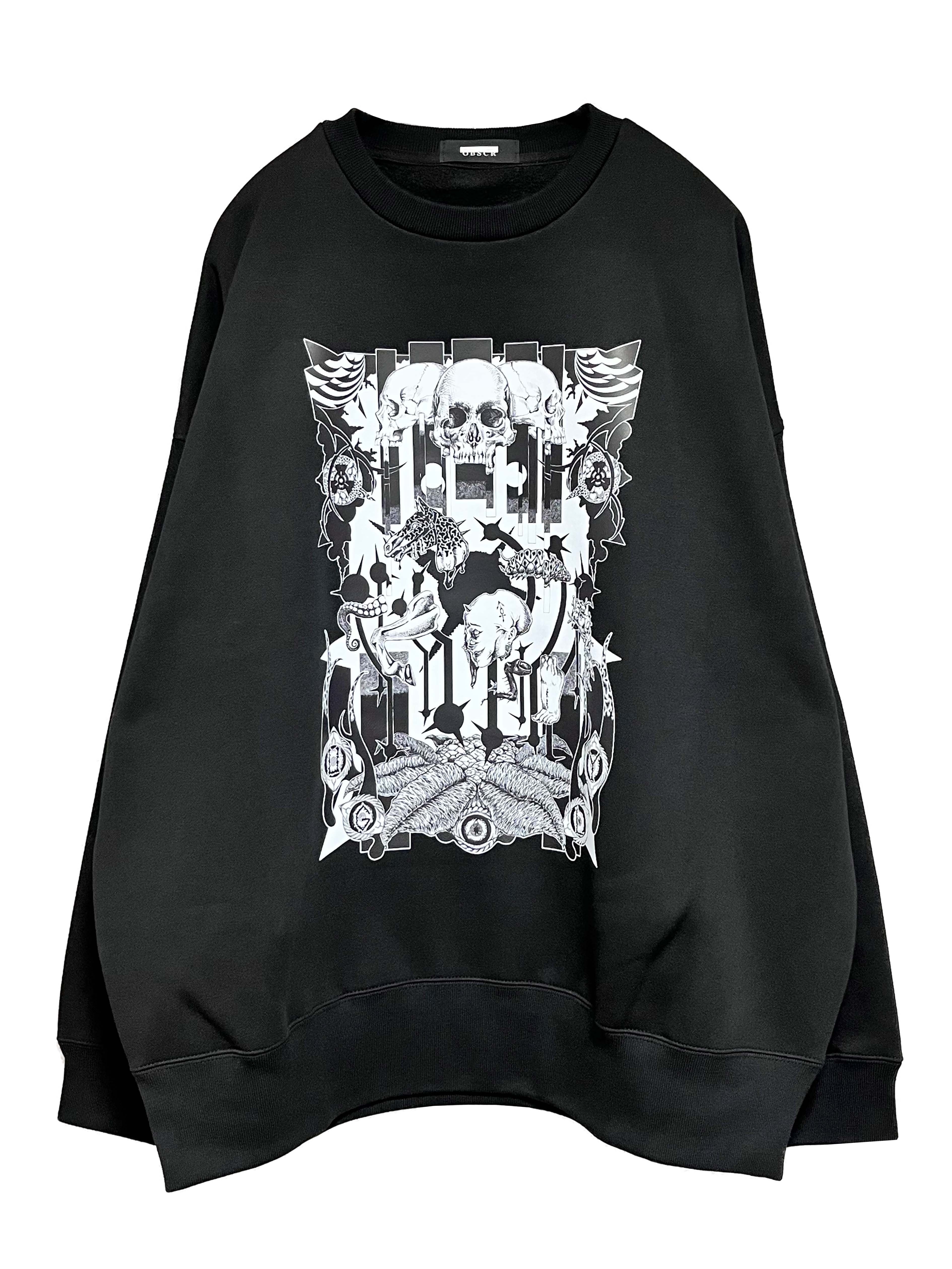 イラストを精緻に再現した転写プリントを施した裏起毛の冬用ビッグシルエットスウェット。