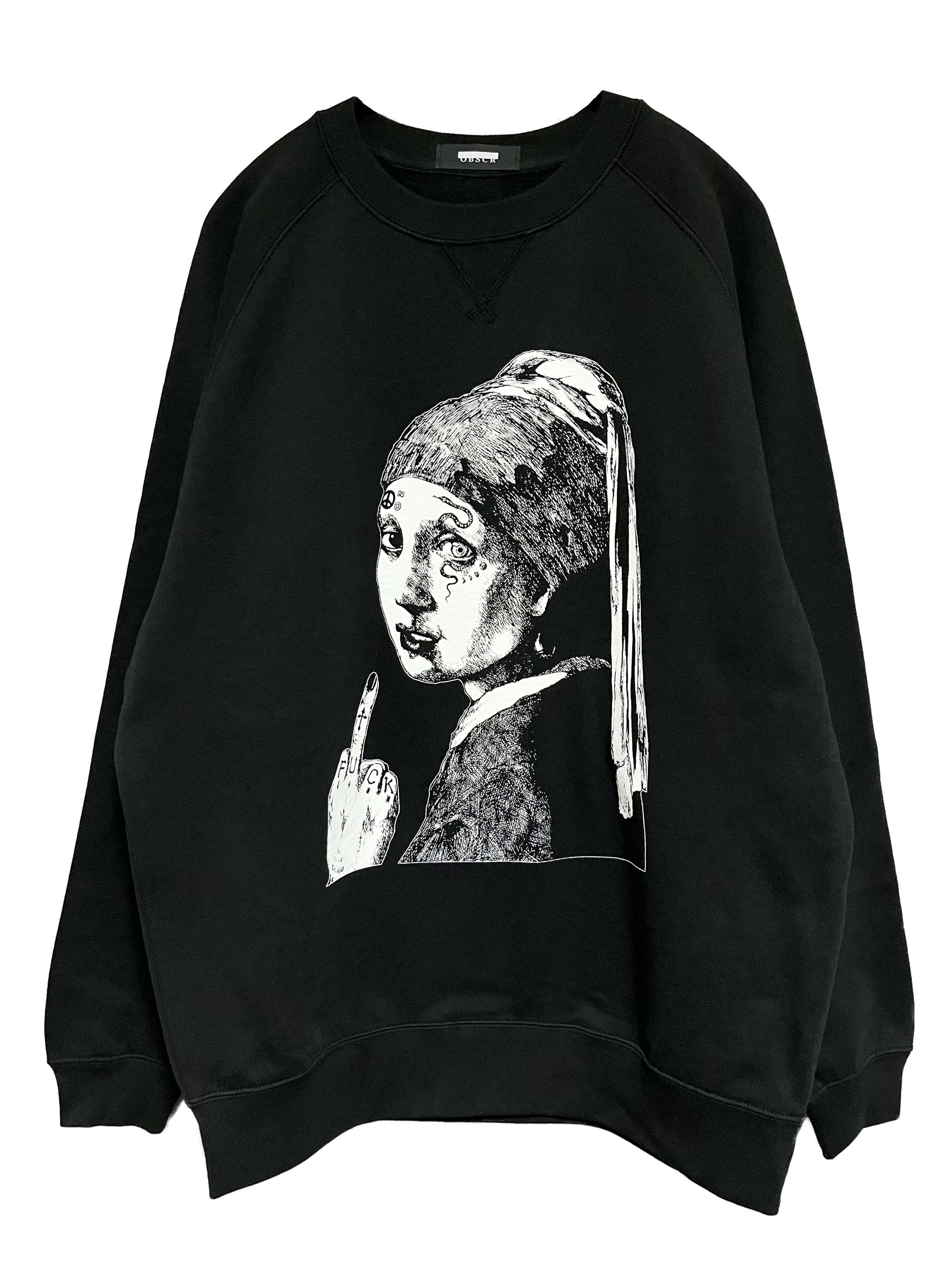 フロントに風合いのあるシルクスクリーンプリントを施した裏パイルのクルーネックスウェット。