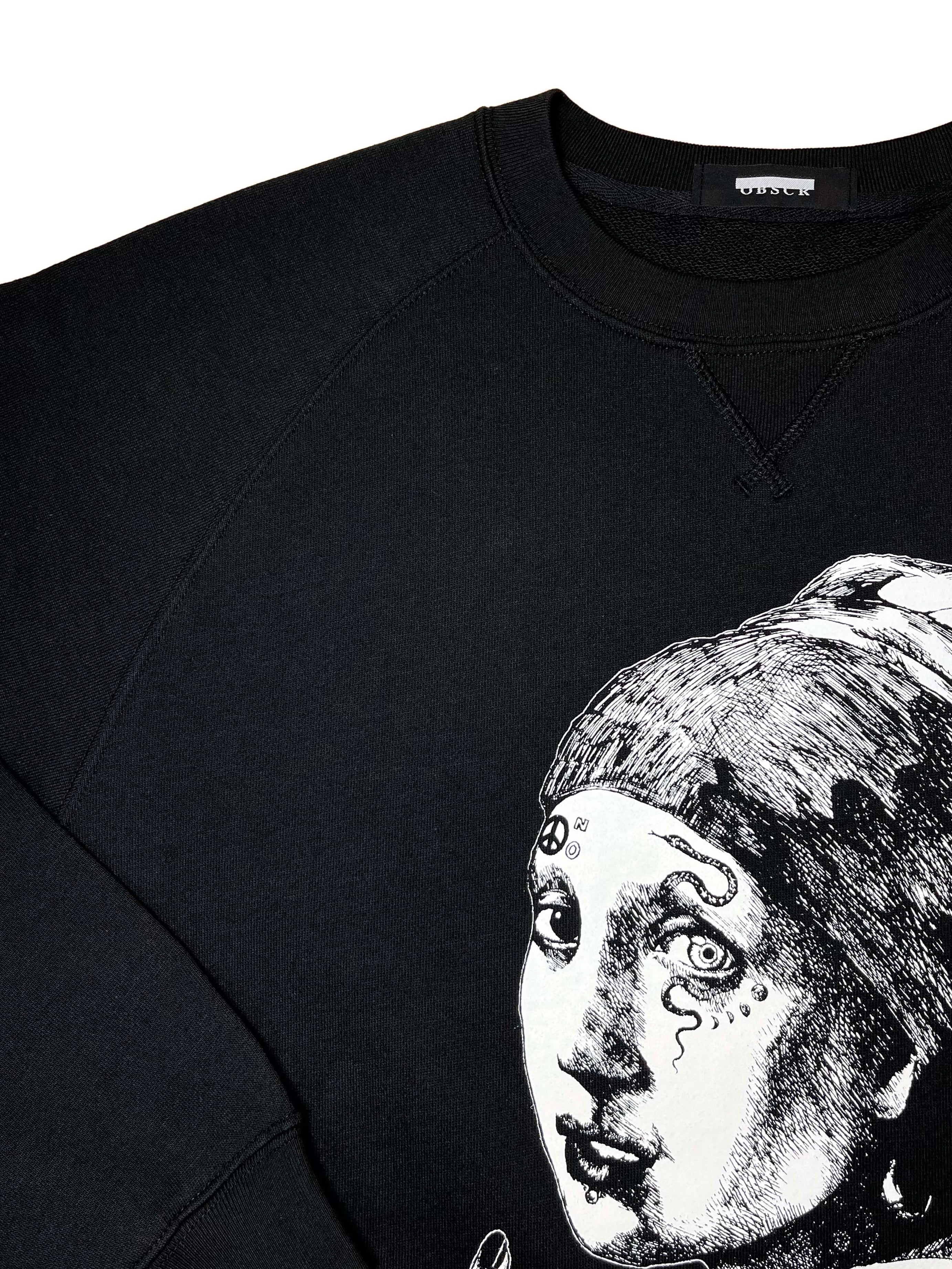 裏パイル ラグランスリーブクルーネックスウェット OBSCR21 ブラック×ホワイト(シルクスクリーン)