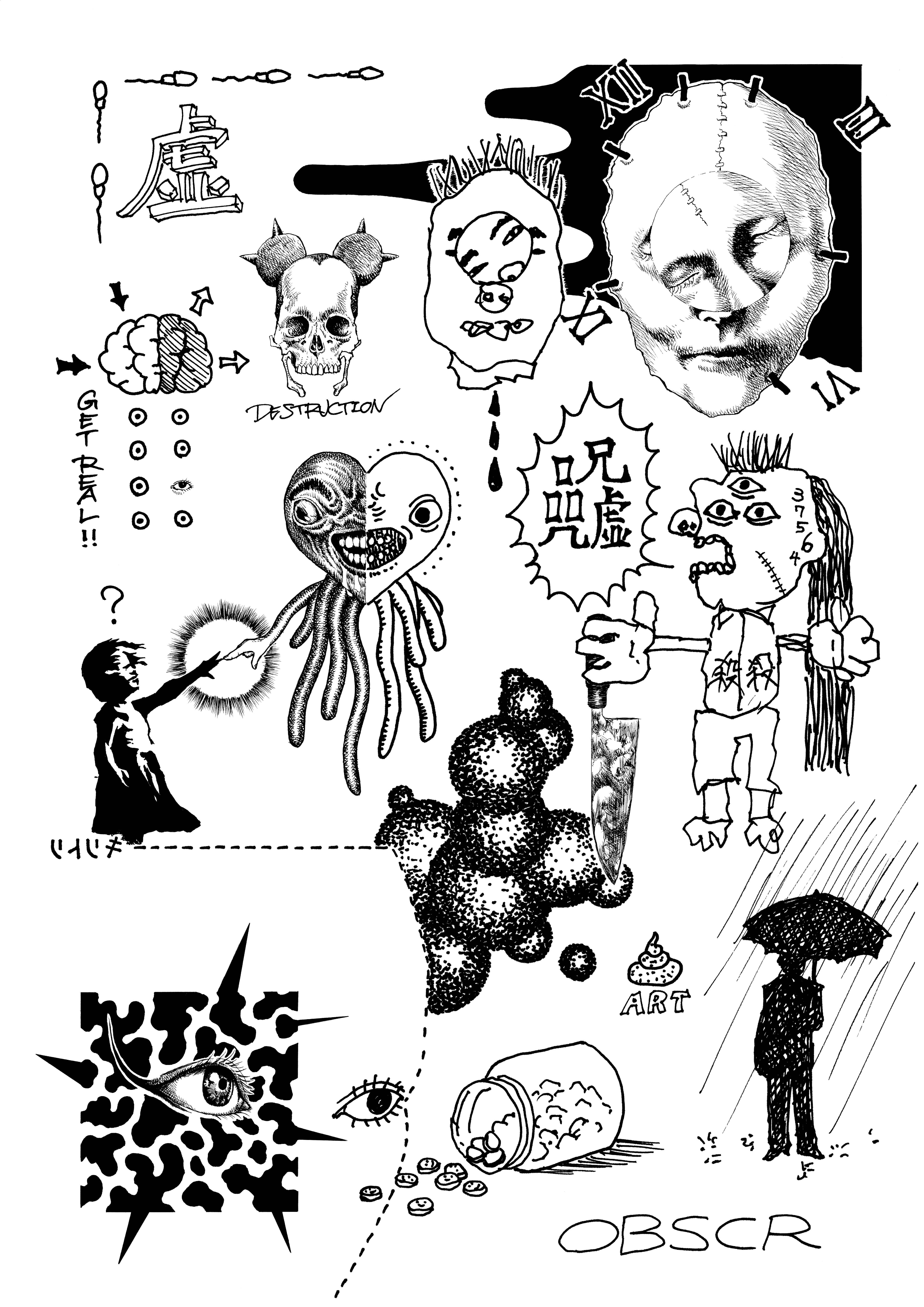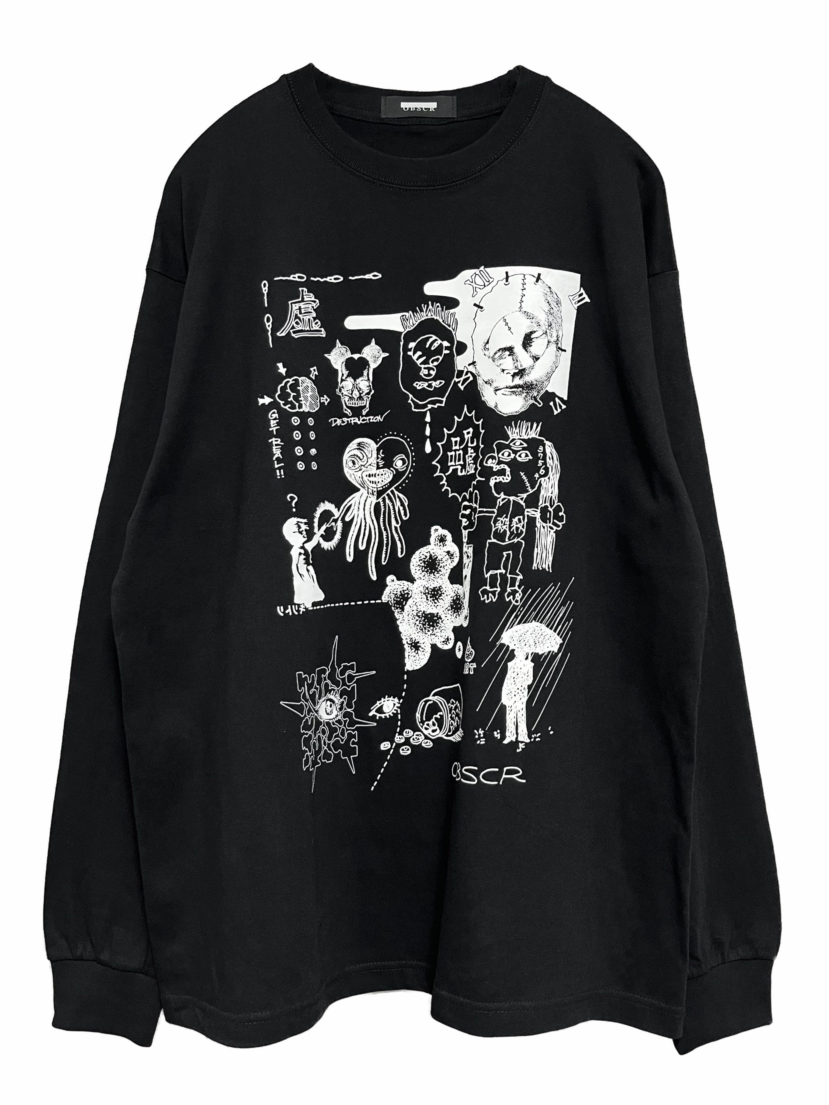 ルーズフィットロングスリーブTシャツ OBSCR57 ブラック×ホワイト(シルクスクリーン)