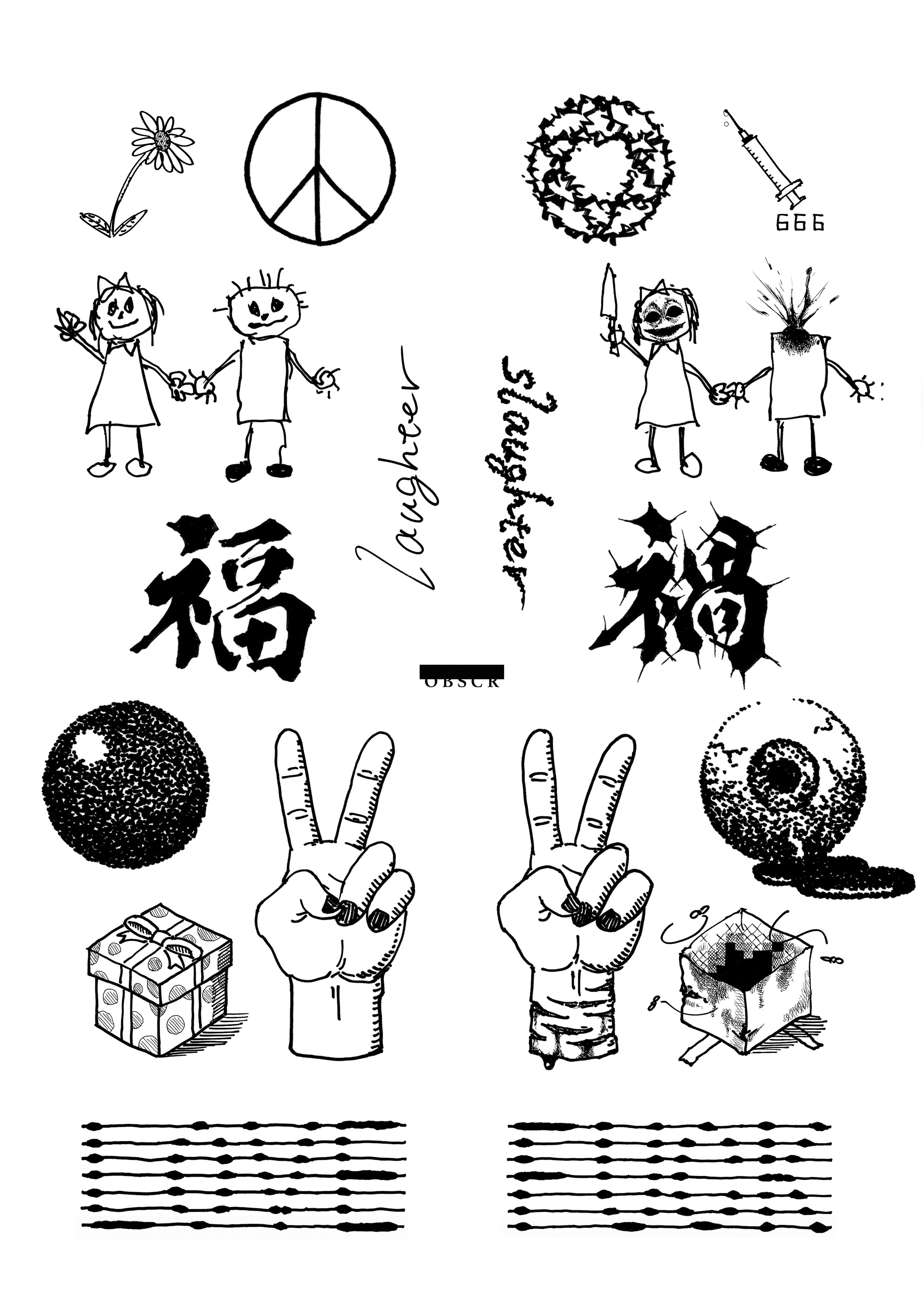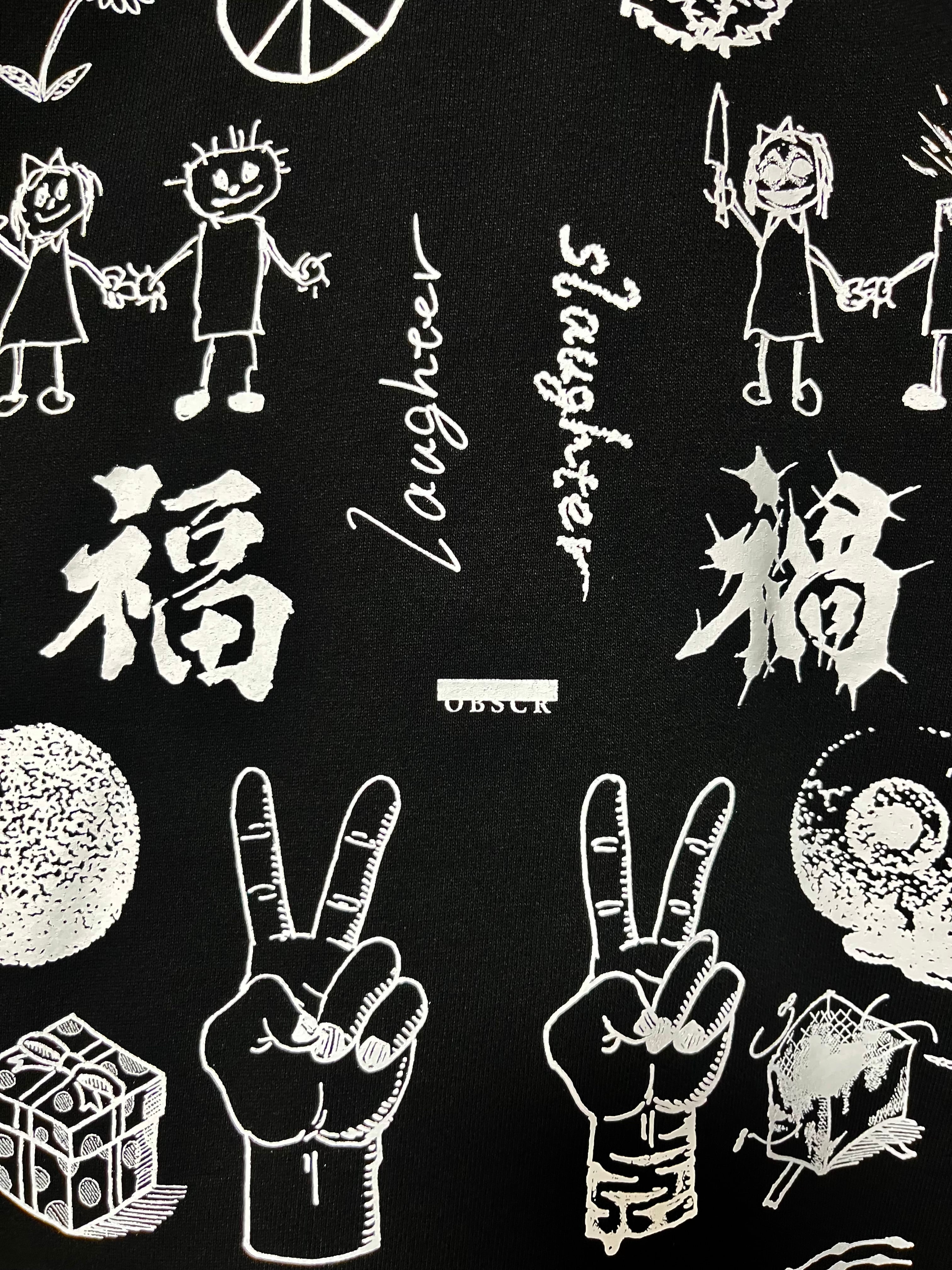 裏パイル ルーズフィットクルーネックスウェット OBSCR62 ブラック×ホワイト(シルクスクリーン)