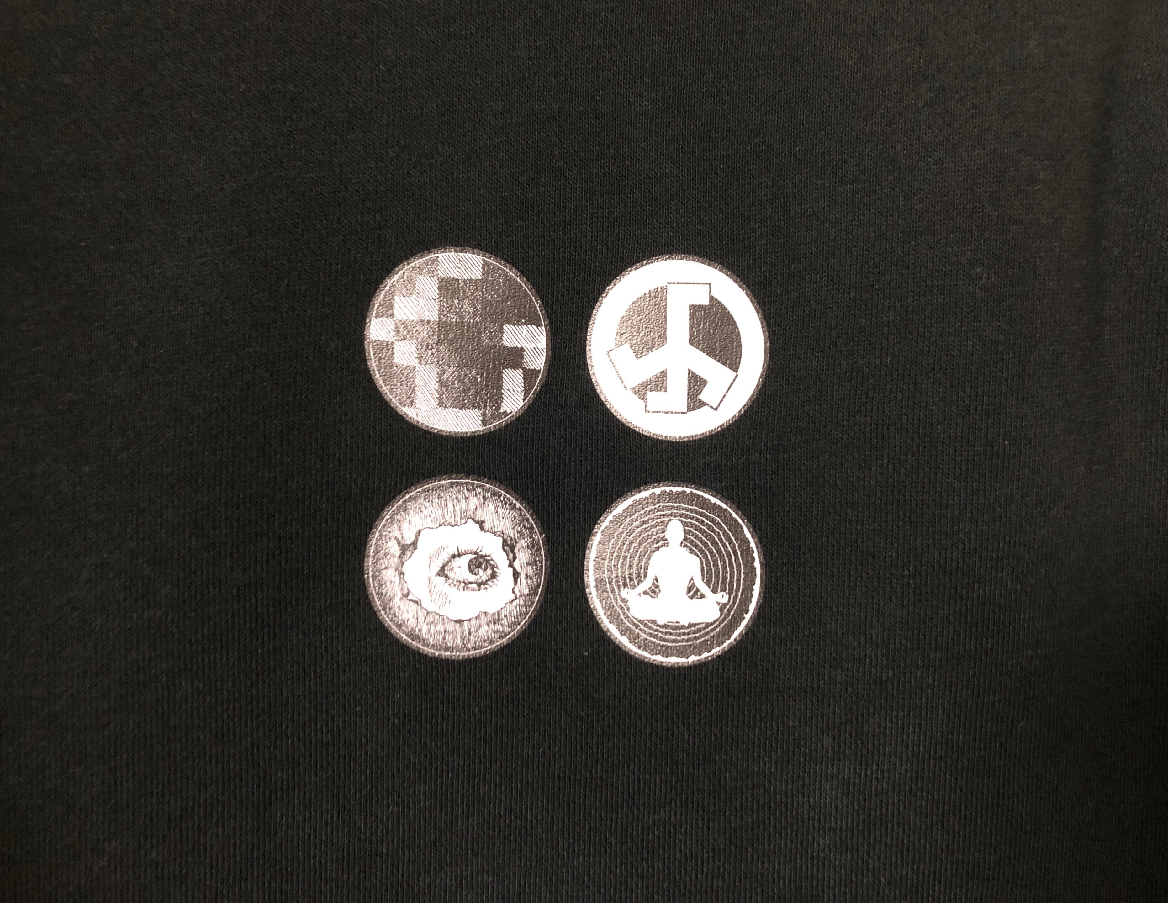 前面胸部と背面にデジタル転写プリントを施したプルオーバーパーカー。