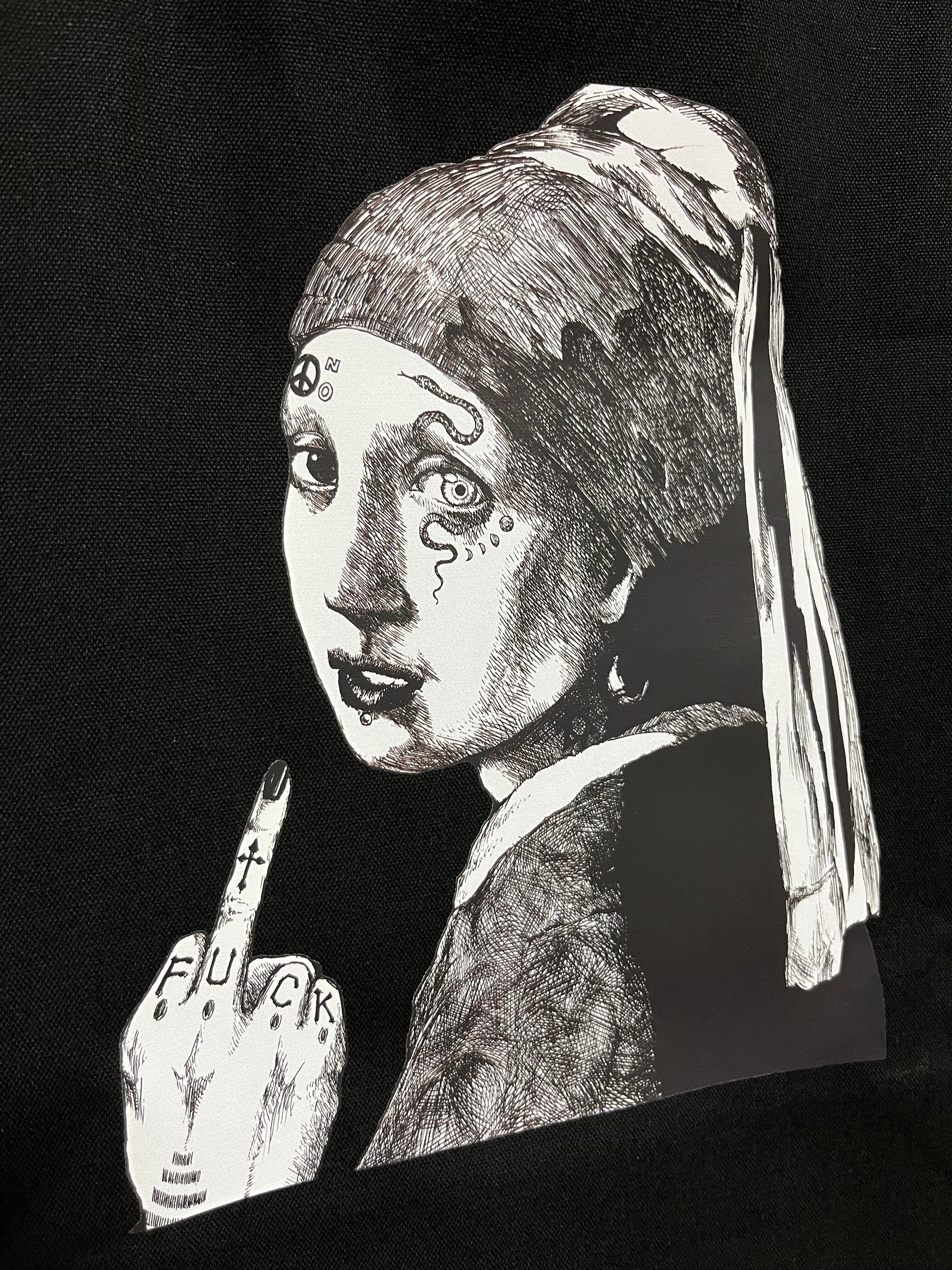 片面にデジタル転写プリントを施し、もう片面にタグを縫製してあります。