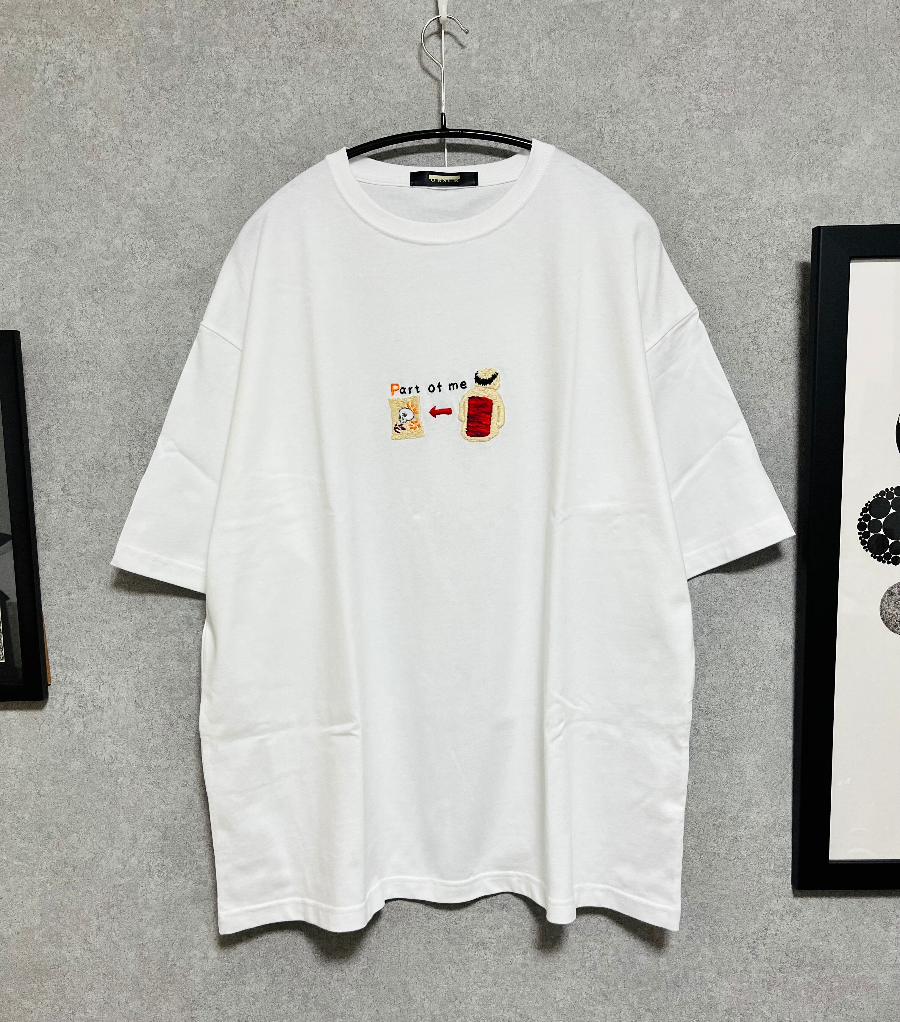 胸部分に手縫いの刺繍を施したビッグシルエットTシャツ。