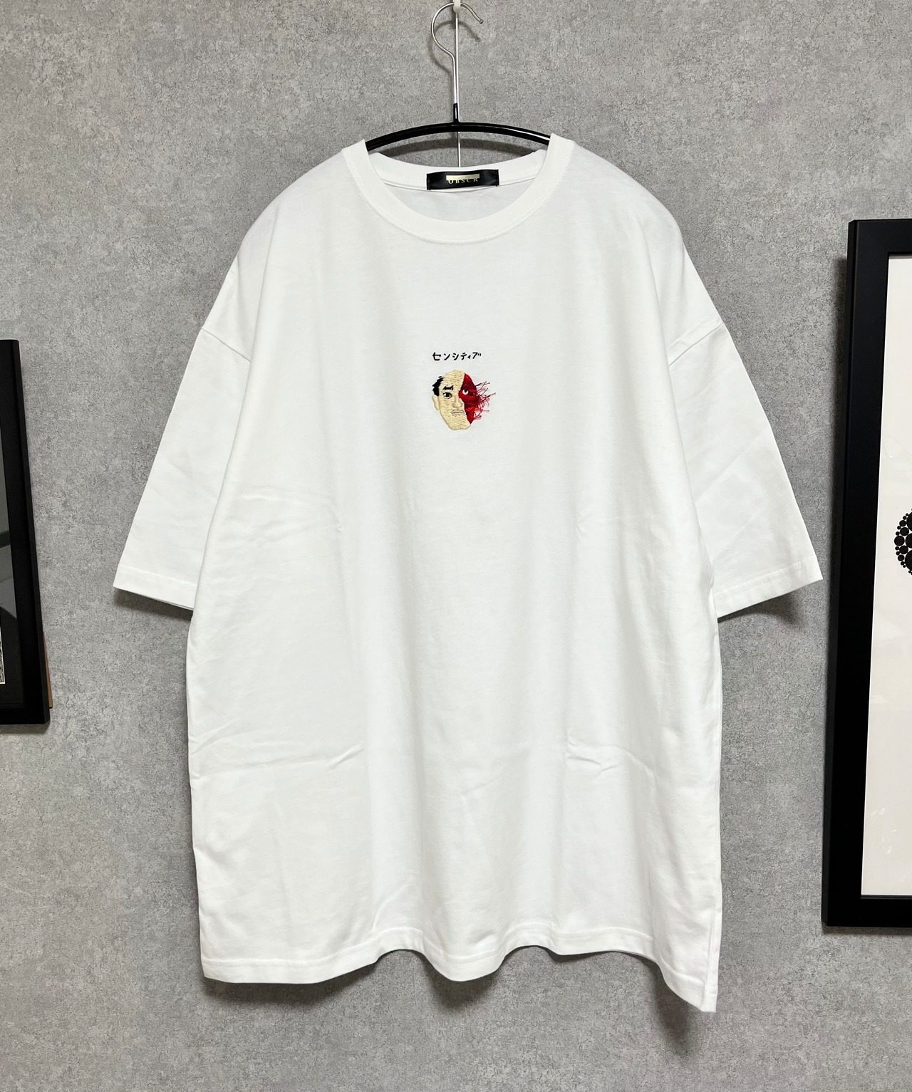 胸部分に手縫いの刺繍を施したビッグシルエットTシャツ。