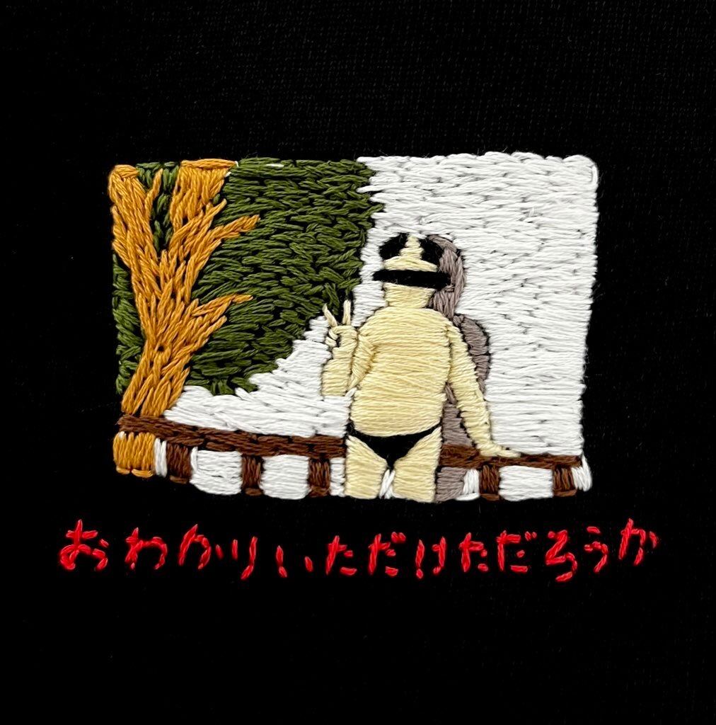 胸部分に手縫いの刺繍を施したビッグシルエットTシャツ。