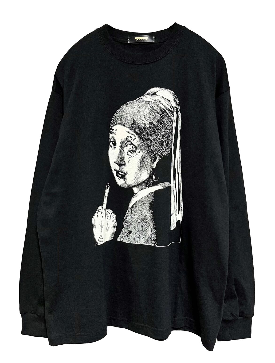 フロントにシルクスクリーンプリントを施したルーズシルエットのロングスリーブTシャツ。