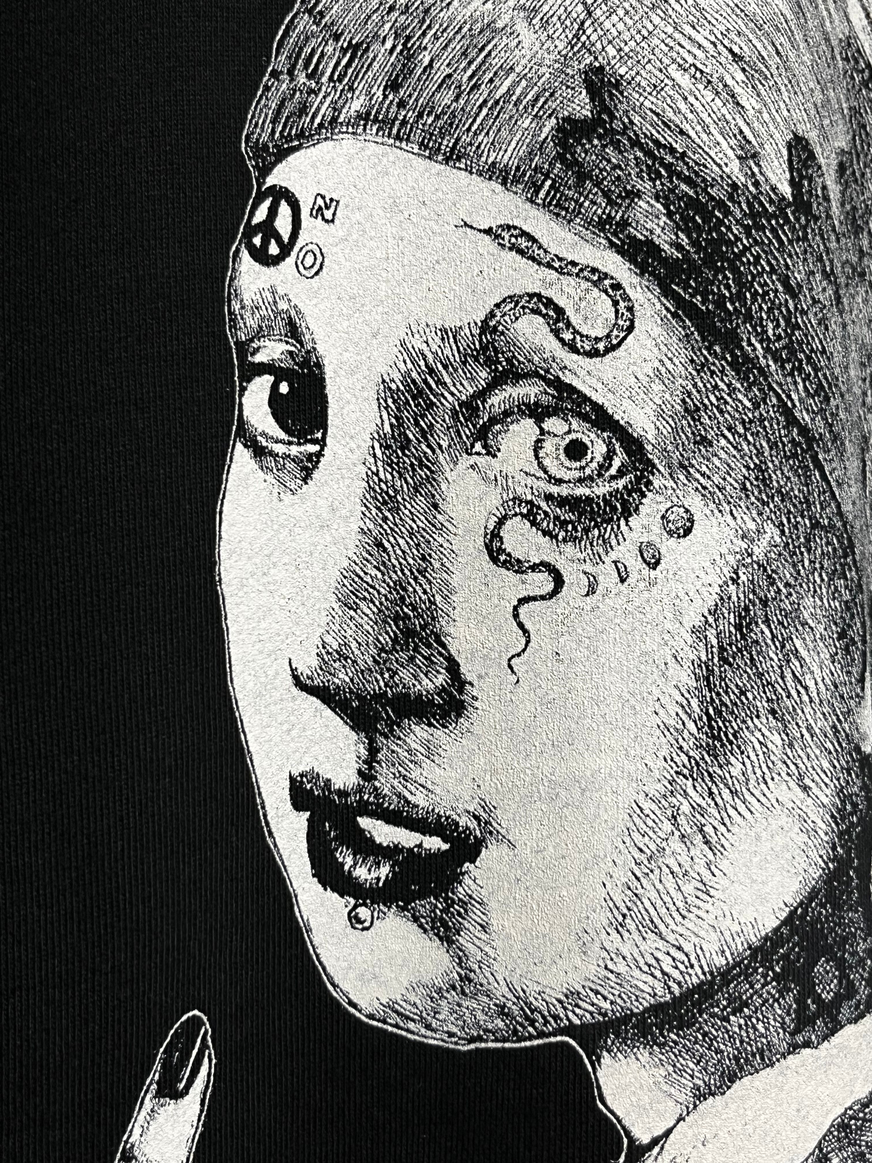 ルーズフィットロングスリーブTシャツ OBSCR21 ブラック×ホワイト(シルクスクリーン)