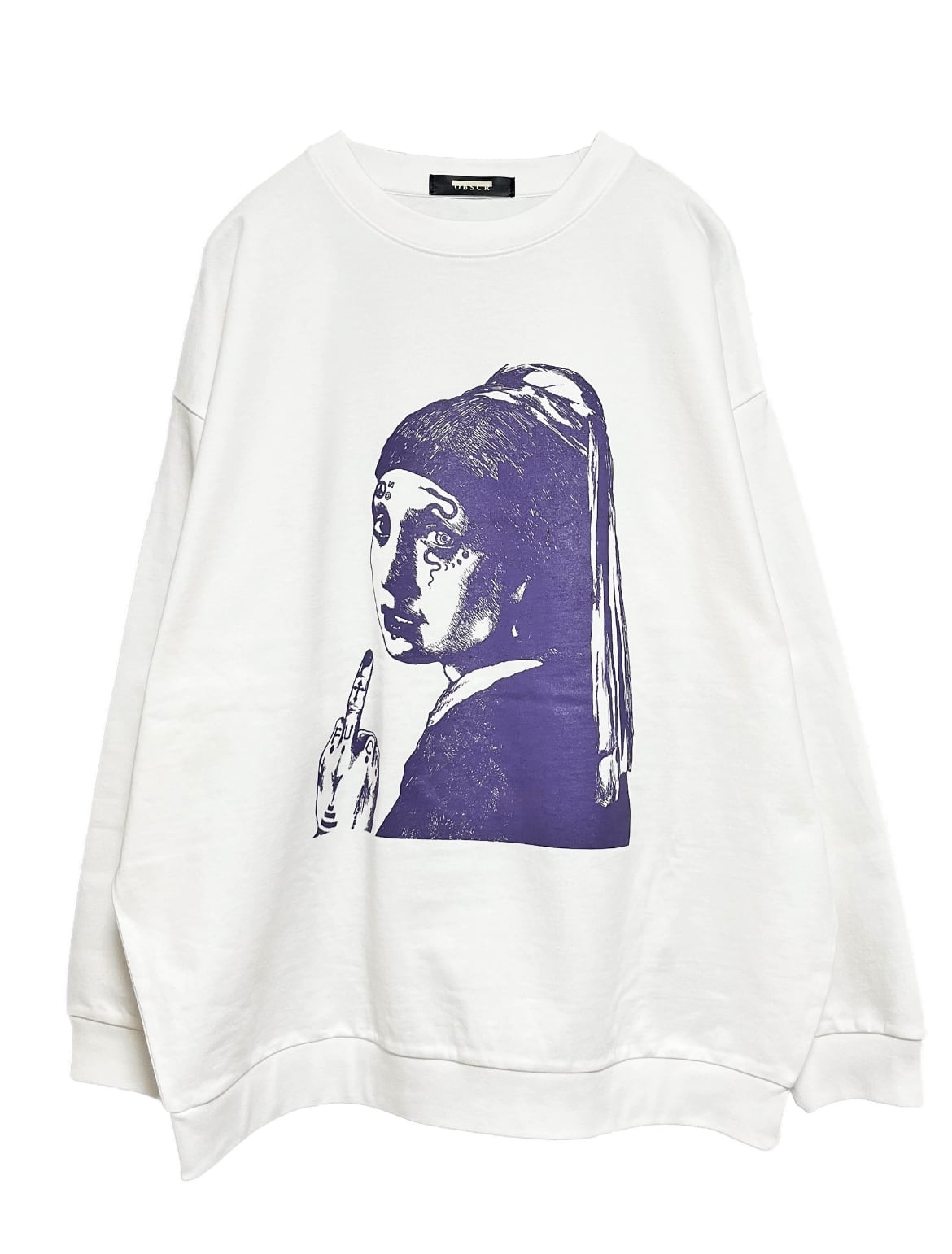 ビッグシルエットロングスリーブTシャツ OBSCR21 ホワイト×ライトパープル(ヘビーウェイト/シルクスクリーン)
