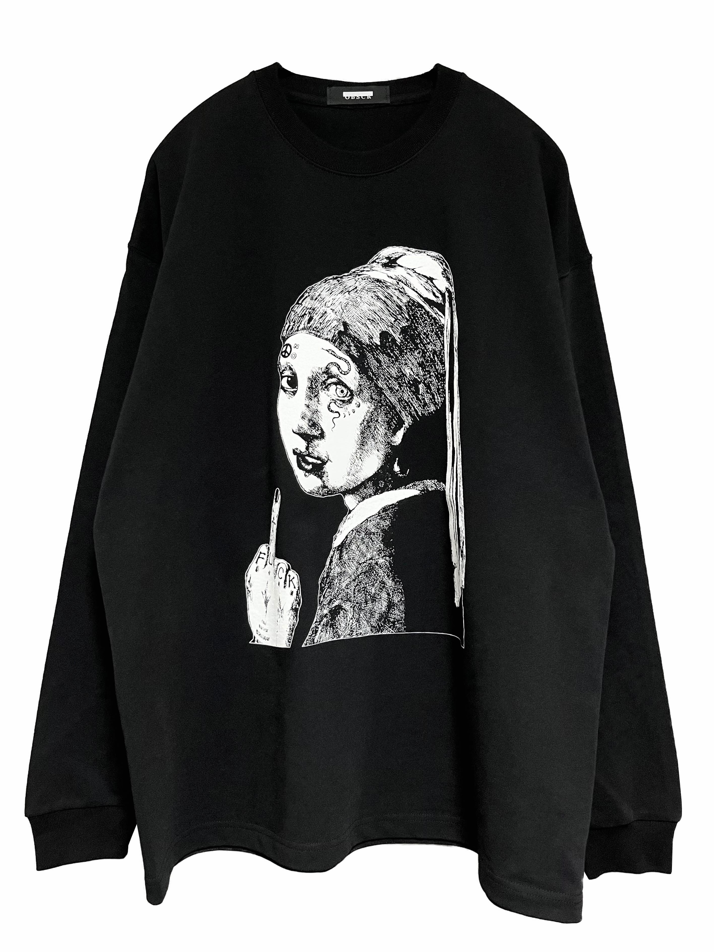 ヘビーウェイトオーバーサイズロングスリーブTシャツ OBSCR21 ブラック×ホワイト(シルクスクリーン)