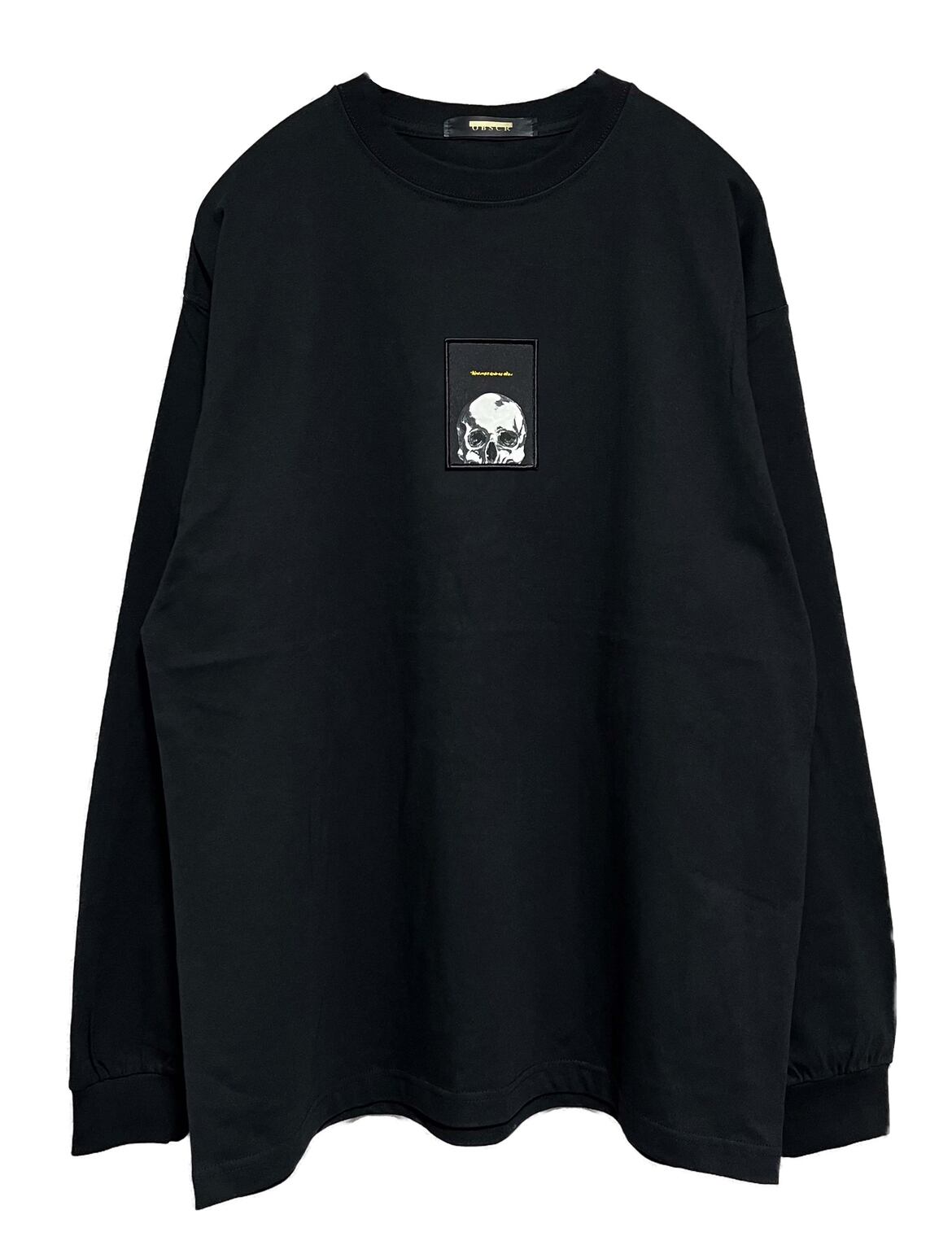 光沢のあるサテンワッペンを縫い付けたロングスリーブTシャツ。