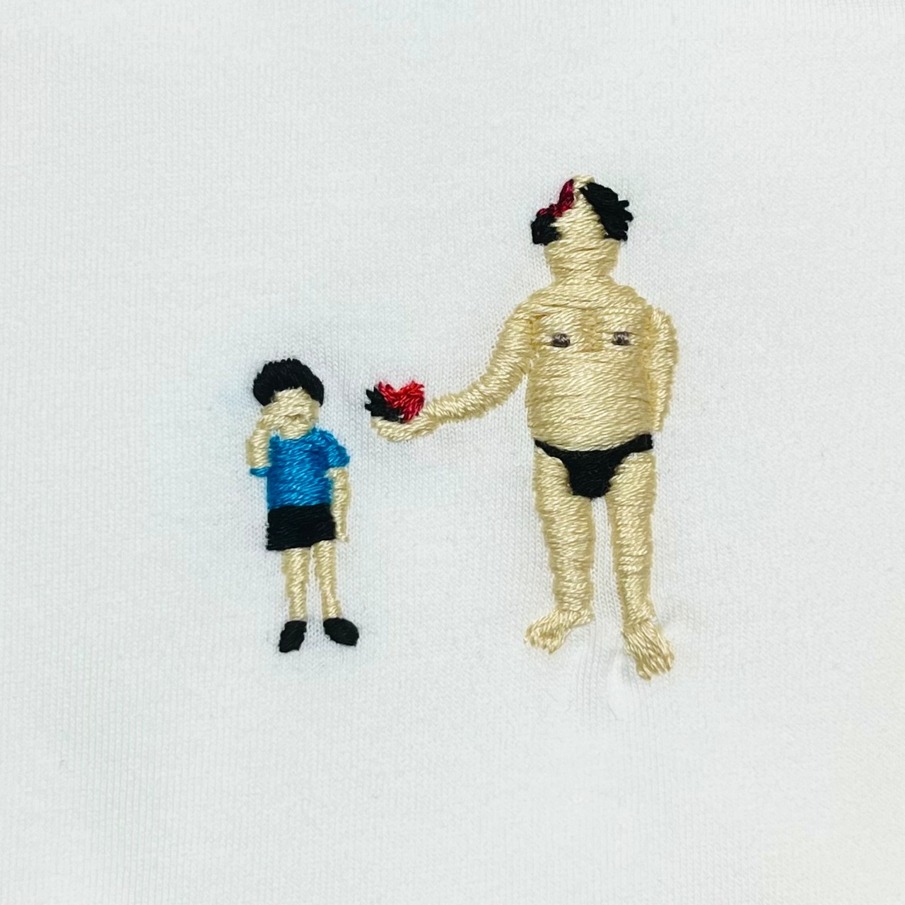 胸部分に手縫いの刺繍を施したビッグシルエットのロングスリーブTシャツ。