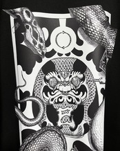 イラストを精緻に再現した転写プリントを施した裏起毛の冬用ビッグシルエットスウェット。