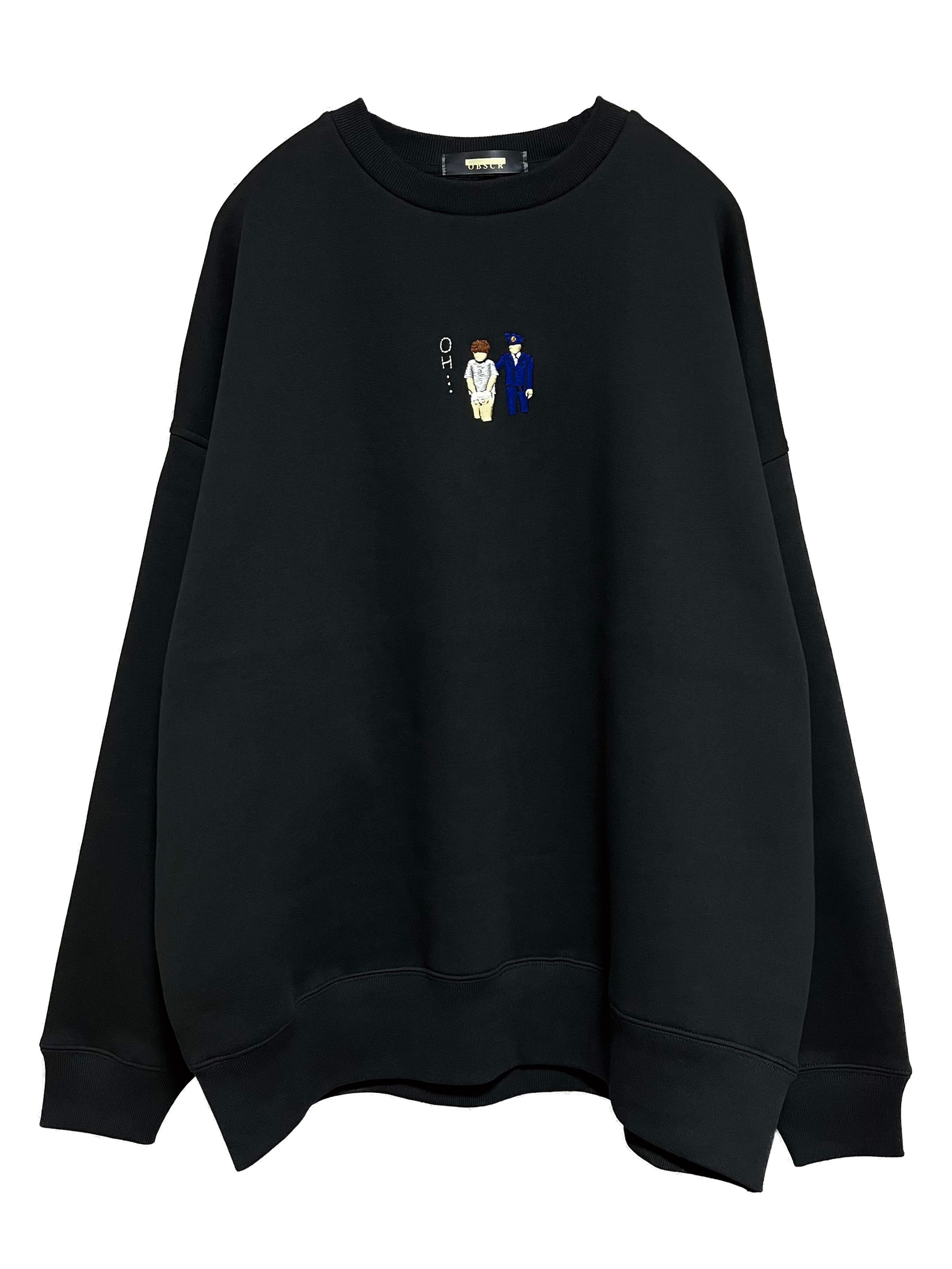 胸部分に手縫いの刺繍を施したビッグシルエットの裏起毛スウェット。